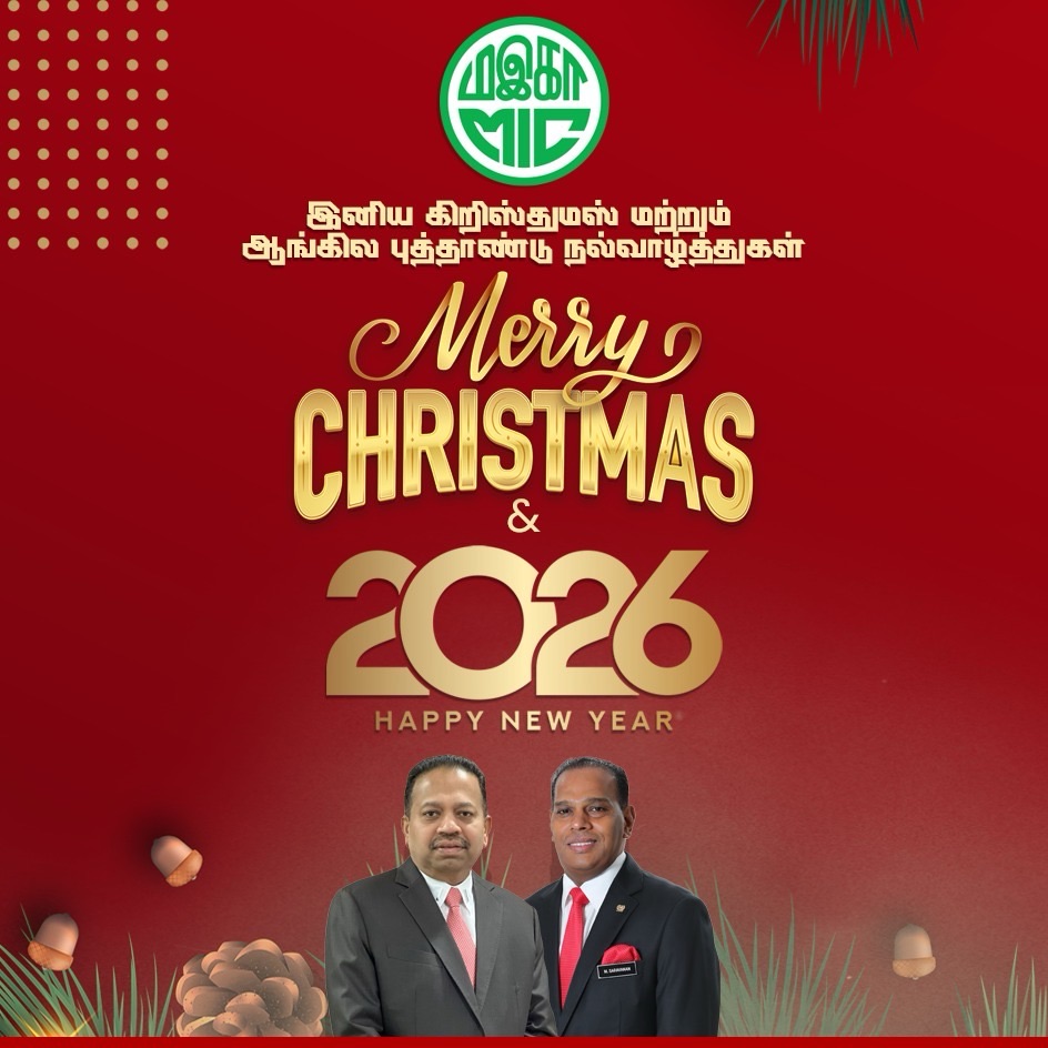 Mi-Voice • MIC News MERRY CHRISTMAS 2 hours ago1 Min Read Editor Share This! FacebookLinkedInXWhatsApp Warm Christmas greetings from the Malaysian Indian Congress (MIC).May joy fill your hearts this festive season, and may 2026 bring peace, progress and prosperity to all Malaysians. 🎄✨ இனிய கிறிஸ்துமஸ் மற்றும் ஆங்கில புத்தாண்டு நல்வாழ்த்துகள். You may also like Mi-Voice • MIC News 79th Malaysian Indian Congress (MIC) Annual General Meeting 1 month ago Mi-Voice • MIC News • MIC Putera • MIC Puteri • MIC Women • MIC Youth Selamat Bersidang 2 months ago Mi-Voice • MIC News 🌺 Selamat Menyambut Hari Malaysia | Happy Malaysia Day | மலேசியா தின வாழ்த்துகள் 🇲🇾 3 months ago About the authorView All Posts Editor Happy Birthday to YBhg Tan Sri SA Vigneswaran Share This! FacebookLinkedInXWhatsApp